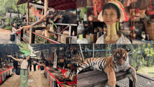 チェンマイの首長族ツアーやタイガーキングダムを効率よく体験。象とのふれあいも楽しみます!
